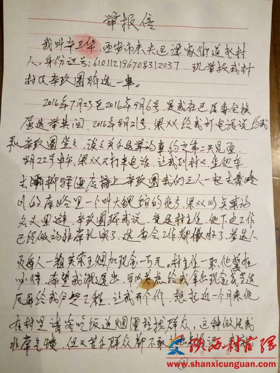 根據2009年5月中共中央辦公廳、國務院辦公廳出臺的《關于加強和改進村民委員會選舉工作的通知》曾明確要求,堅決查處村民委員會選舉中的賄選等違法違紀行為,《中華人民共和國村民委員會組織法》第十七條第二款、《陜西省村民委員會選舉辦法》第四十三條之規定,對以暴力、威脅、欺騙、賄賂、偽造選票、虛報選舉票數等不正當手段,妨害村民行使選舉權、被選舉權,破壞村民委員會選舉的行為,村民有權向鄉、鎮的人民代表大會和人民政府或者縣級人民代表大會常務委員會和人民政府及其有關主管部門舉報,保障村民選舉以公平、公正的合法權益!
