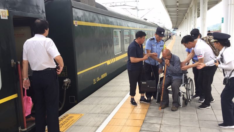 本網訊(通訊員:孟亮)2018年8月12日,延安市黃陵縣阿黨鎮84歲的劉秉義老人欲購買黃陵南站到河北石家莊的K214火車車票看病,因無法工作人員提供身份證號在黃陵南站售票廳急的淚流滿面,在此執勤的延安鐵路公安處黃陵站派出所民警楊松關及時趕到,為老人及時辦理了臨時乘車身份證明并開辟了綠色通道將老人及時送上火車,受到周圍群眾的一致稱贊。